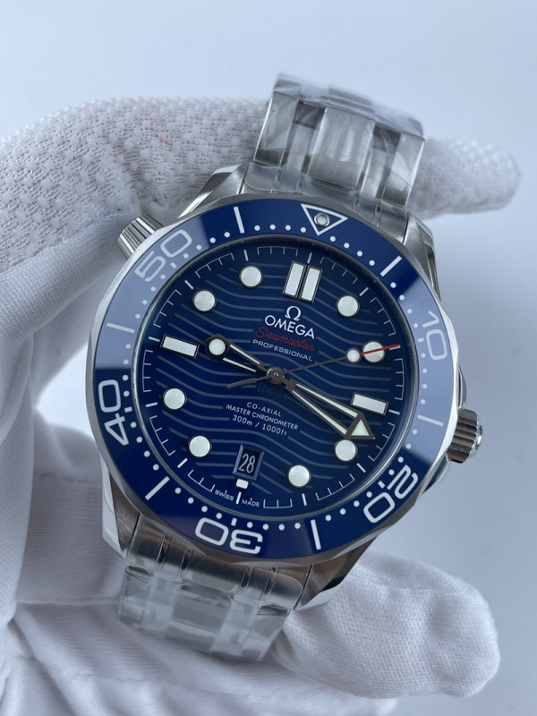 (준비완료/특급배송)NO.1122/VS공장 오메가 씨마스터 다이버 300 스틸 블루다이얼 러버밴드